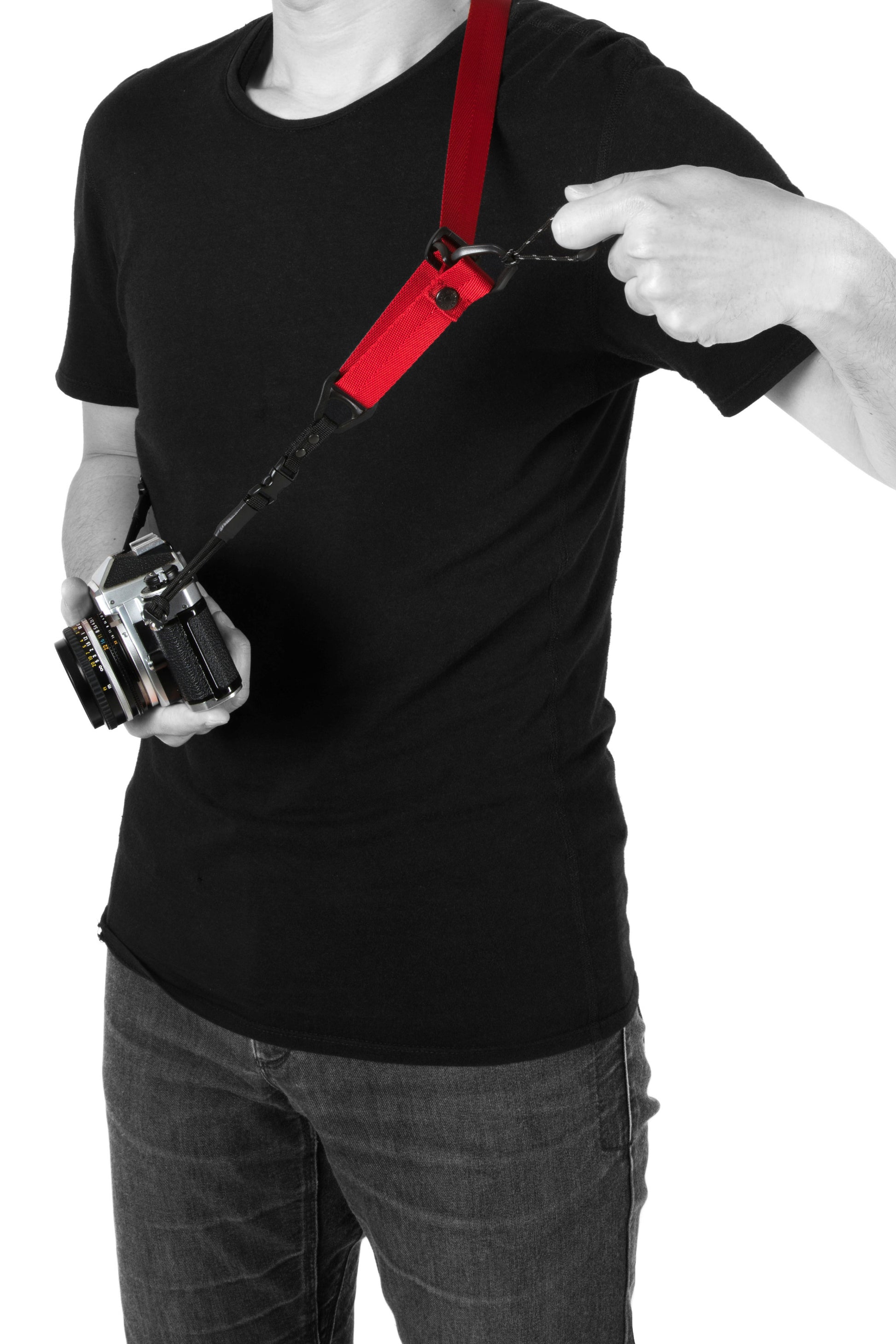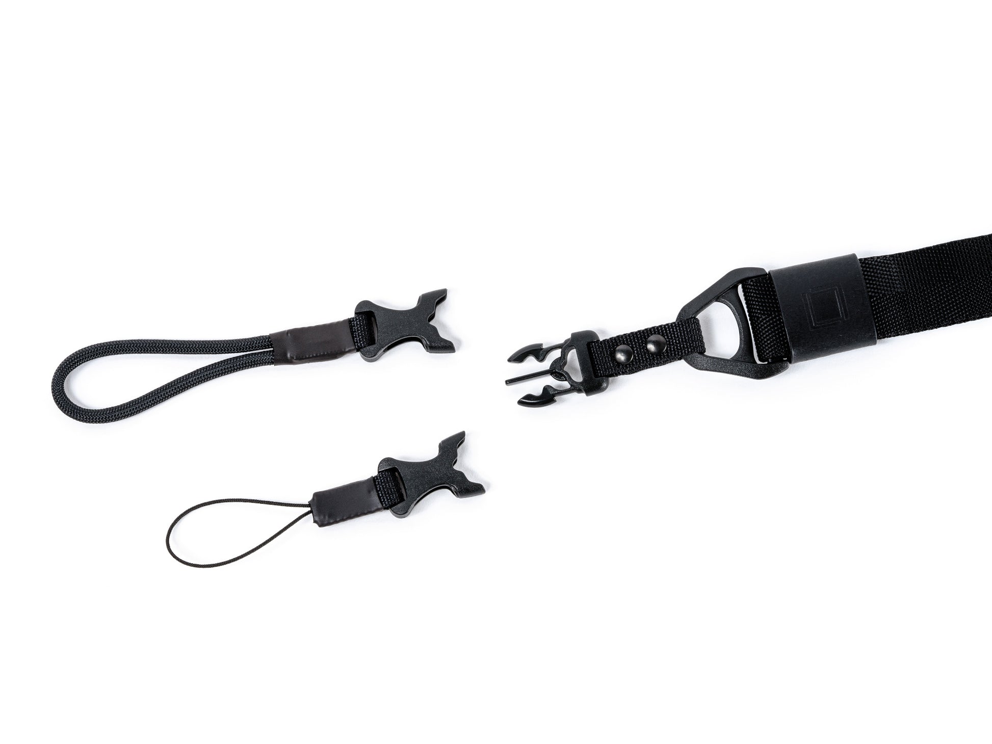 Zum Befestigen der Gurtenden an der Kamera oder zum Wechsel zwischen Befestigungsschlaufen und -schlingen lässt sich der Gurt über Schnellverschlüsse problemlos von den Gurtenden trennen. Dadurch kann derselbe Gurt an verschiedenen Kameras mit unterschiedlichen Befestigungslösungen verwendet werden. Geeignet für DSLRs, spiegellose Systemkameras, Kompakt- und Videokameras.