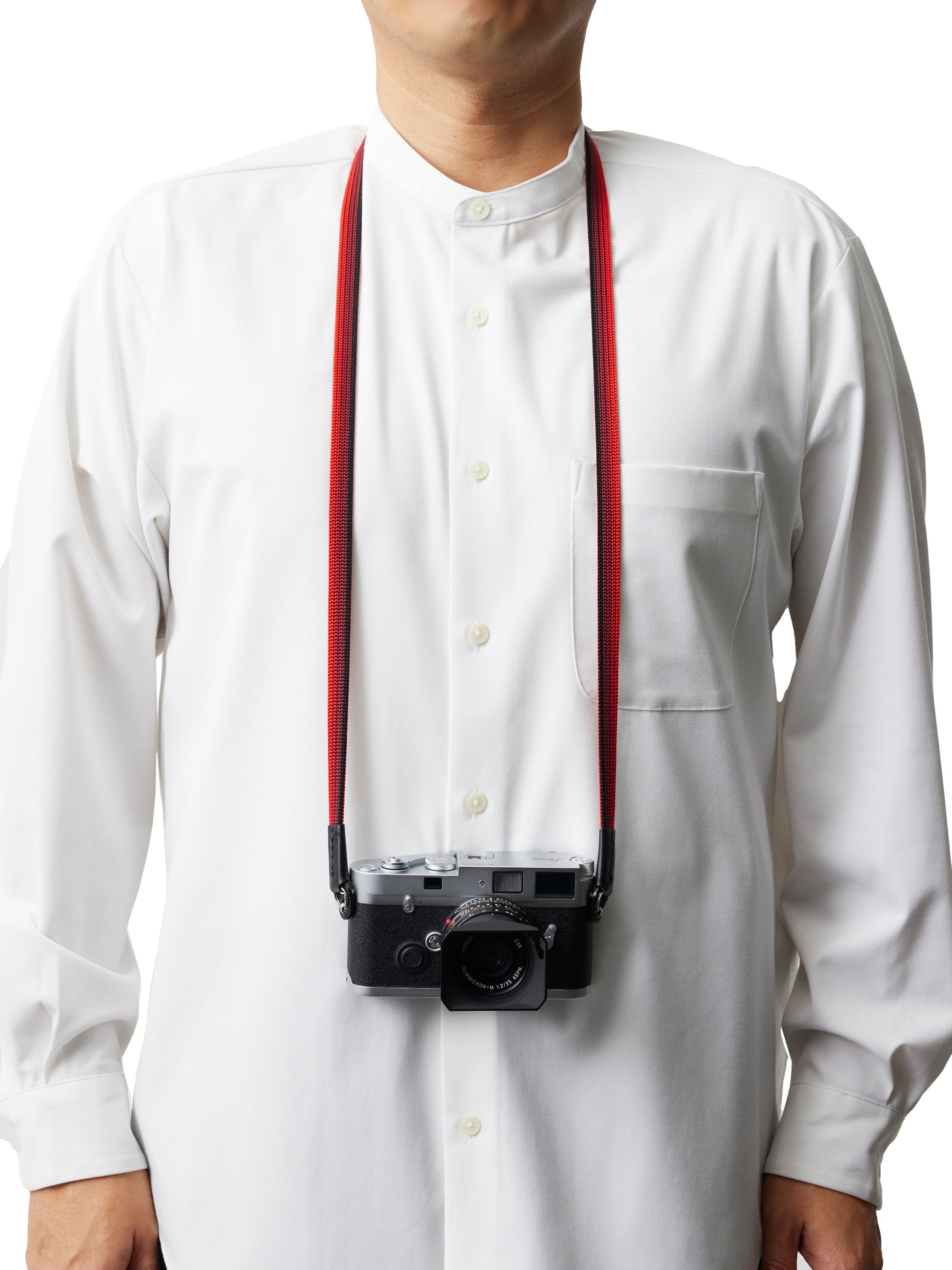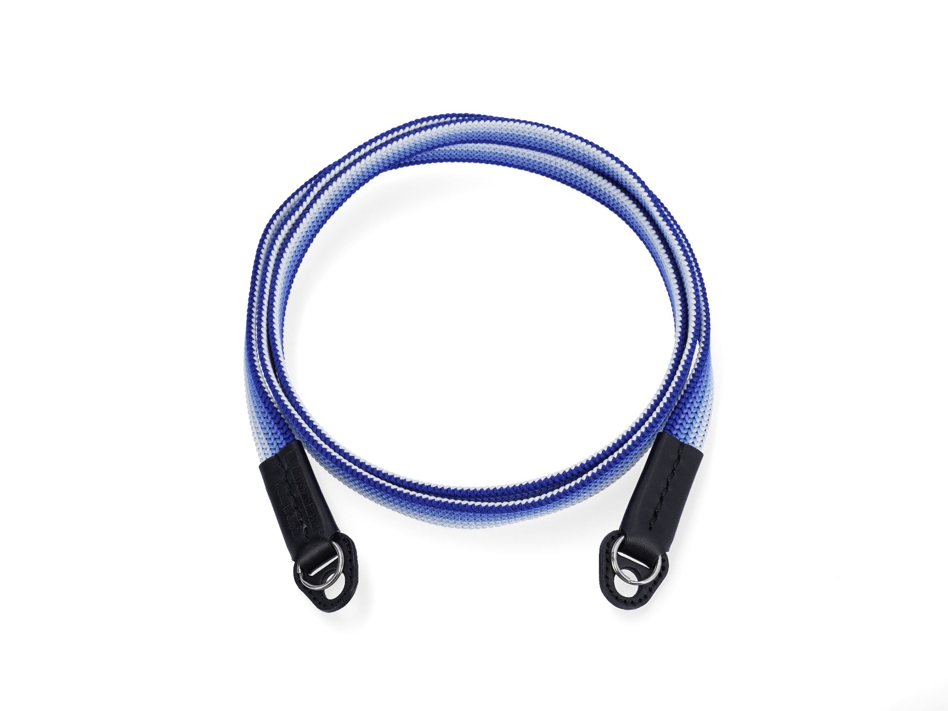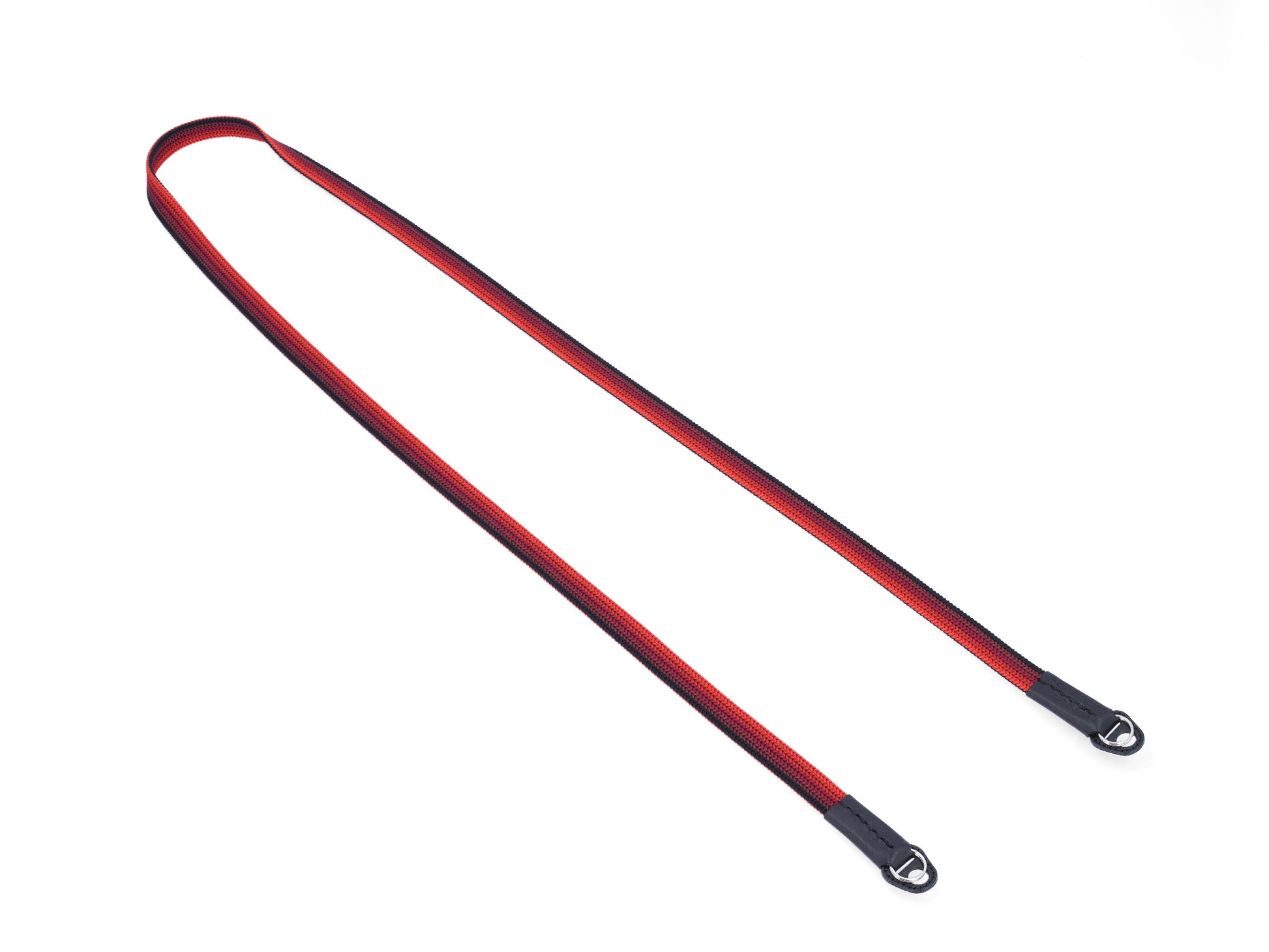 Handgewebter Kameragurt aus reiner Seide in flacher „Ayatake“-Webtechnik mit filigranem Farbverlauf, komplett durchgewebt, d.h. ohne Verwendung anderer Materialien im Inneren. Elastisch, hochstabil und atmungsaktiv. Hoher Tragekomfort. Lässt sich auch einfach ums Handgelenk wickeln und als Handschlaufe verwenden. Gurtenden mit Schutzlaschen aus italienischem Leder. Ringbefestigung aus Edelstahl.