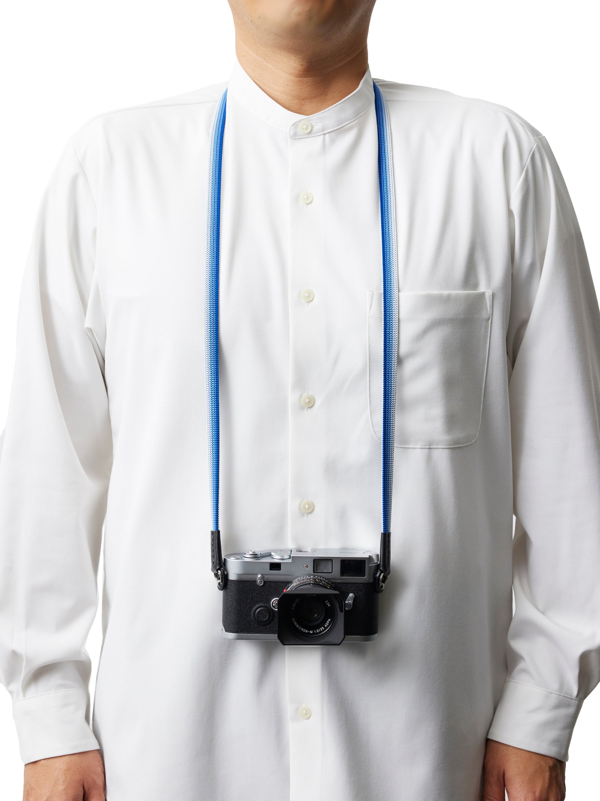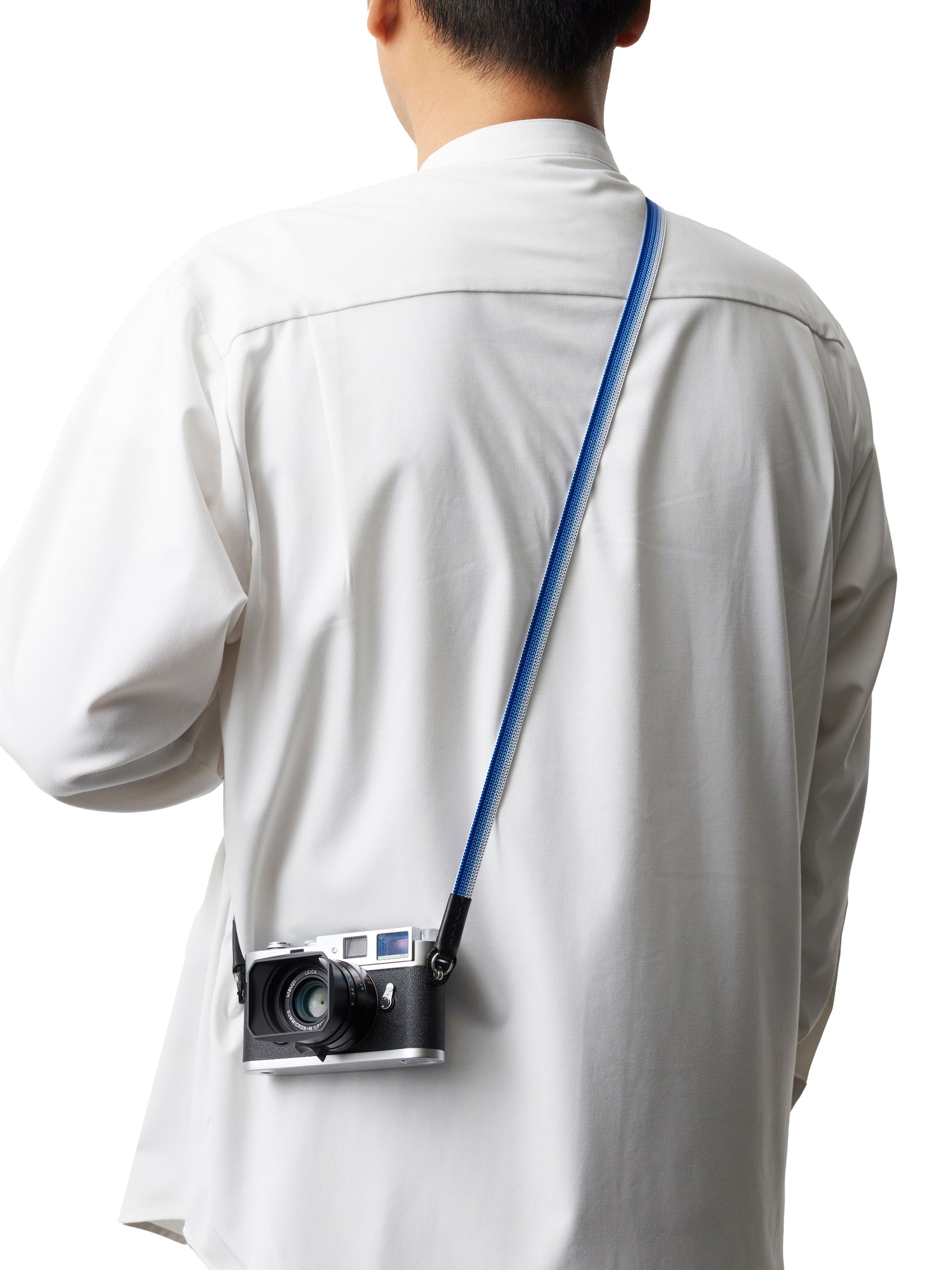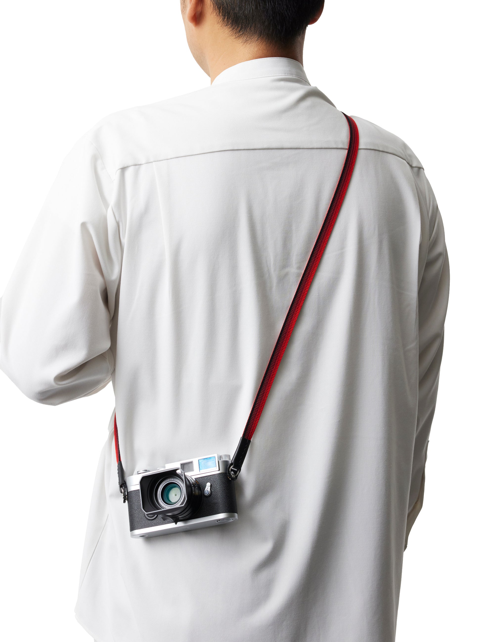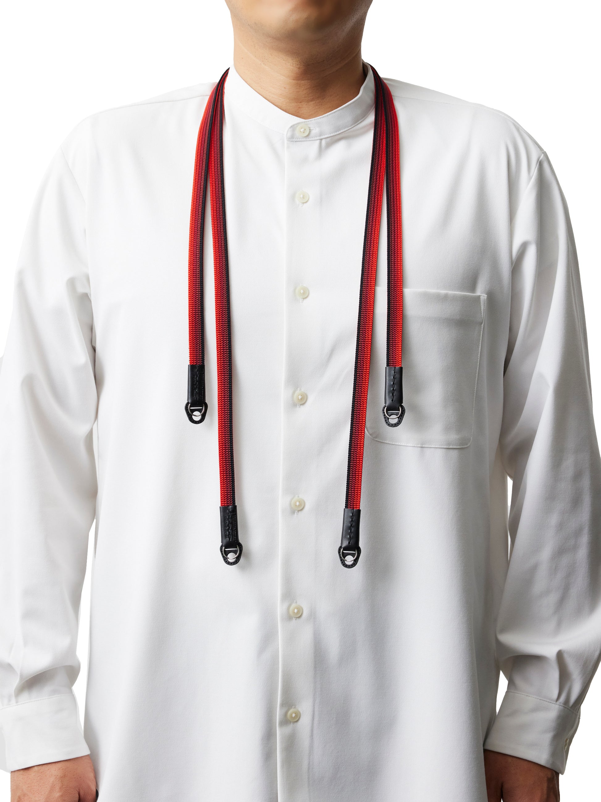 Handgewebter Kameragurt aus reiner Seide in flacher „Ayatake“-Webtechnik mit filigranem Farbverlauf, komplett durchgewebt, d.h. ohne Verwendung anderer Materialien im Inneren. Elastisch, hochstabil und atmungsaktiv. Hoher Tragekomfort. Lässt sich auch einfach ums Handgelenk wickeln und als Handschlaufe verwenden. Gurtenden mit Schutzlaschen aus italienischem Leder. Ringbefestigung aus Edelstahl.