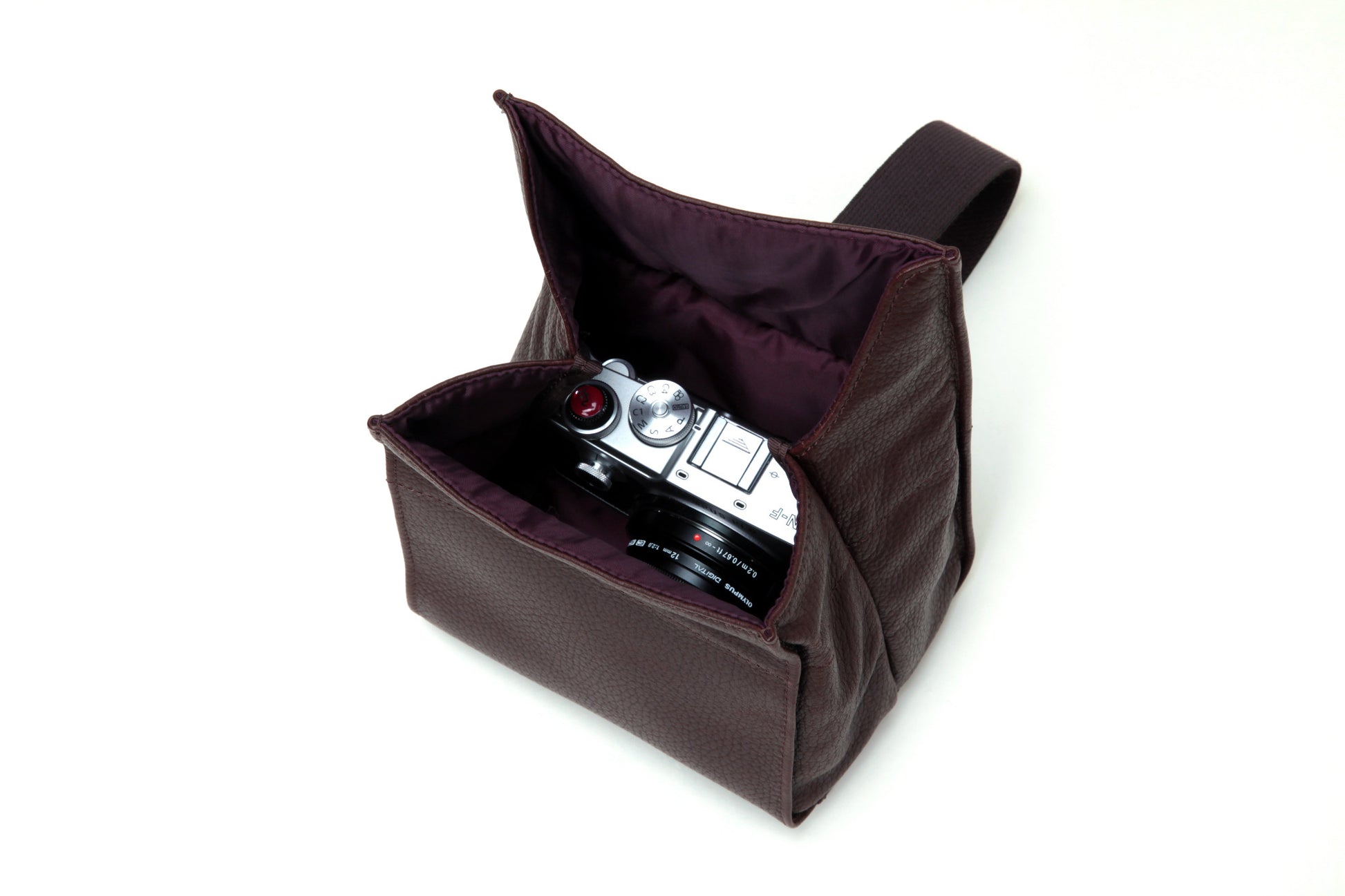 Handgefertigter Weichleder-Beutel für eine kleinere spiegellose Systemkamera oder eine Leica, jeweils mit angesetztem Standardobjektiv, auch für Objektive und Zubehör geeignet. Zum Schutz vor Schmutz, Staub und Kratzern. Elastisches Verschlussband: der Beutel passt sich an die Größe des Inhalts an. Glattes, seidenartiges Innenfutter, schützende Polsterung. Ideal zur Unterbringung im Gepäck oder in einer größeren Fototasche.