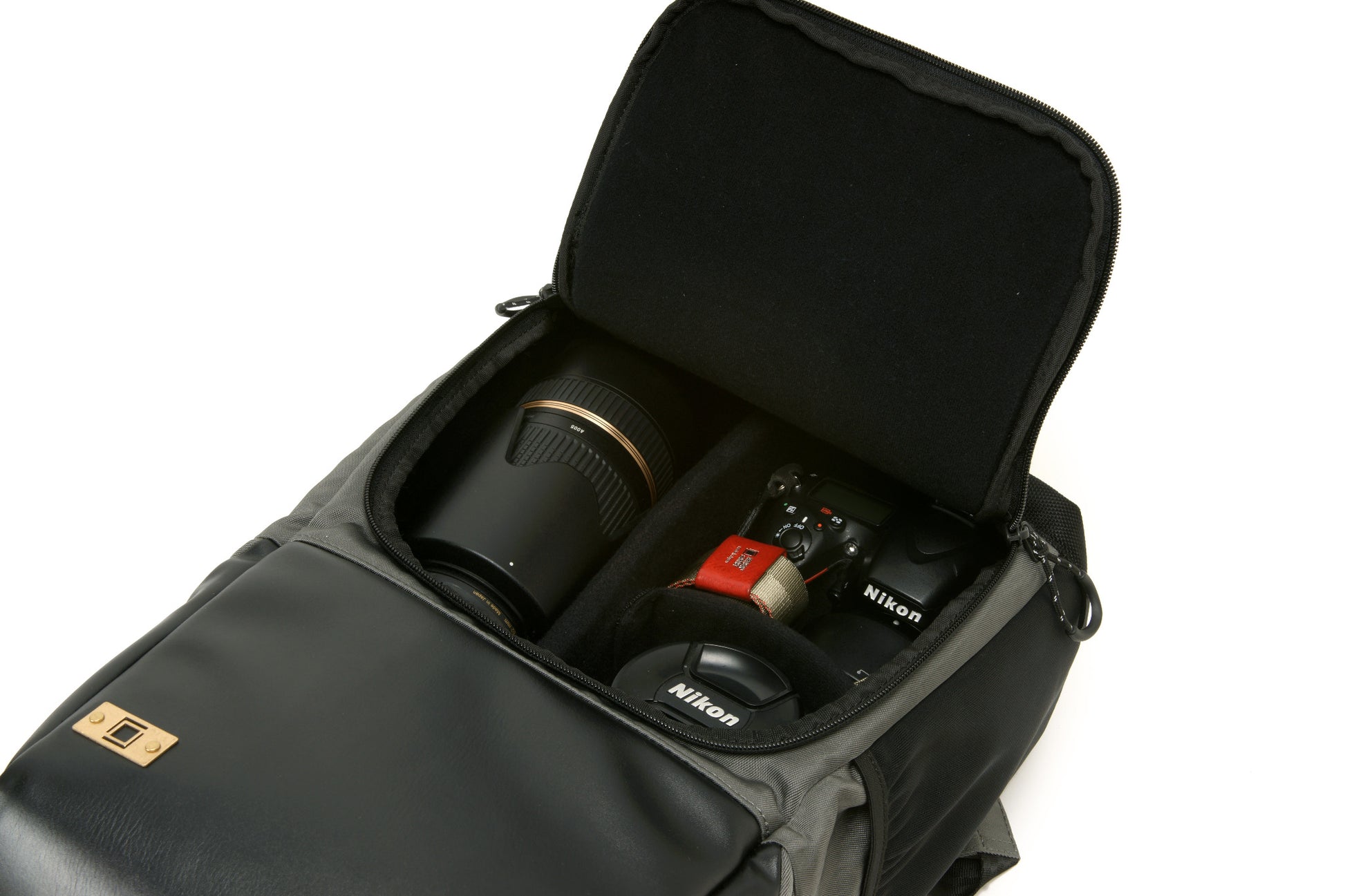 Fotorucksack mit zweiteiligem Aufbau. Oberteil mit zusätzlichem Innenfach für Daypack oder Kamera mit angesetztem Objektiv. Schneller Zugriff über Klappdeckel mit Zweiwege-Reißverschluss. Unterteil mit variablen Trennelementen für 2 bis 3 weitere Objektive, Blitzgerät oder Zweitgehäuse. Aufgesetzte Fronttasche mit verdecktem Reißverschluss. Gepolstertes Fach an der Rückseite mit Seiteneingriff, geeignet für 13“ Notebook oder Bücher und Dokumente bis DIN A4. Zwei Seitentaschen, davon eine mit seitlichem Reißverschluss.