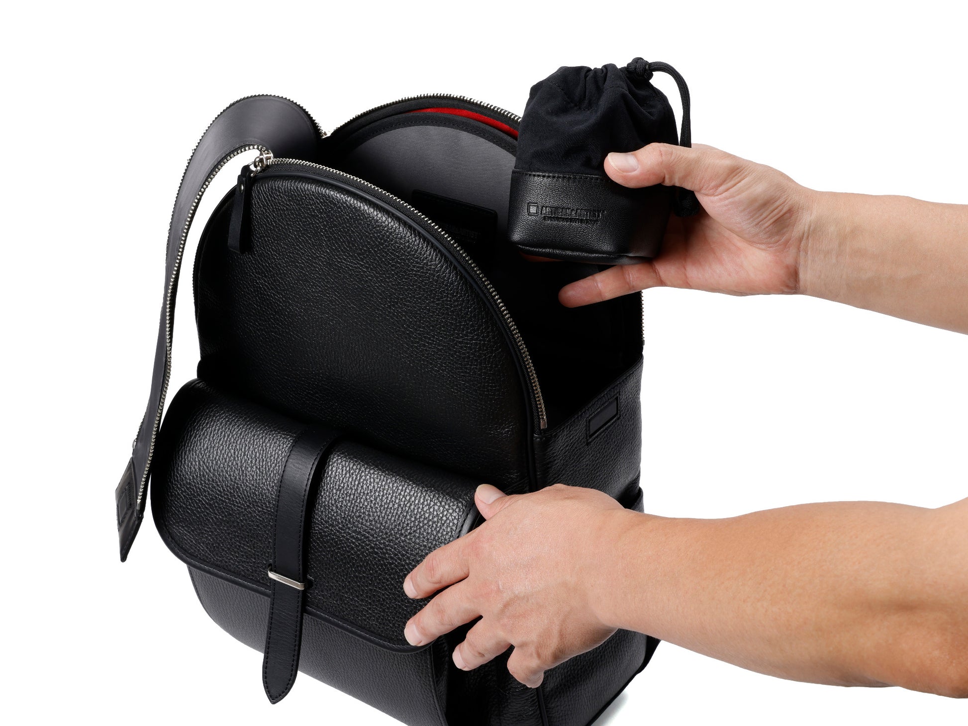 Weiches samtartiges Innenfutter, zusätzliche Polsterung am Boden zum Schutz des Objektivs. Herausnehmbarer Polsterring mit passendem Ausschnitt für Leica M Objektiv-Rückdeckel. Ohne den Polsterring auch für Objektive anderer Hersteller geeignet.