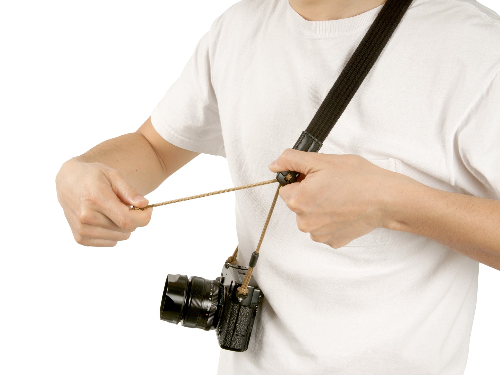 Hintergrundinformation: Die Inspiration zu diesem außergewöhnlichen Kameragurt lieferte der seit 1970 in Südostasien vermisste amerikanische Fotojournalist und Fallschirmspringer Sean Flynn – Sohn der Hollywood-Legende Errol Flynn -, der für seine Leica M2 eine Gurtkombination aus Paracord (Fallschirmseide) benutzte.